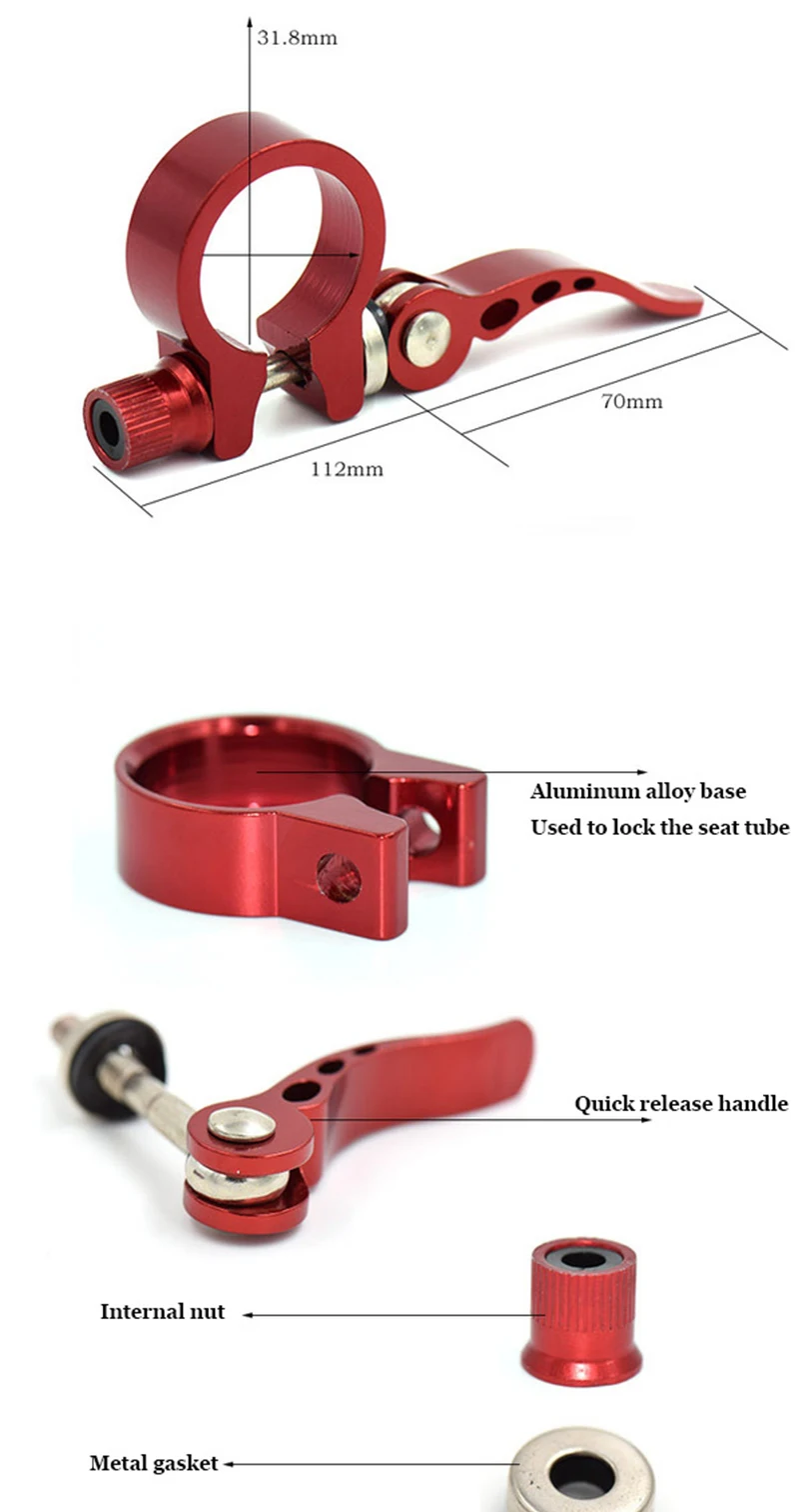 Материал: алюминиевый сплав Размер зажима: 25,4/28,6/31,8/34,9 мм Вес: 52 г Размещение на транспортном средстве: подседельный штырь Цвет: Золотой/синий/черный/красный/серебристый/зеленый