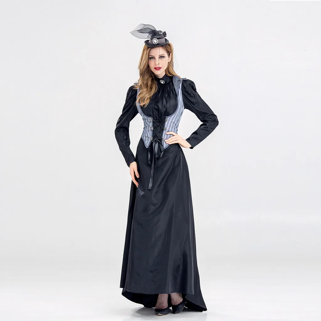 Для женщин Хэллоуин Косплей Костюм винтажное платье макси с длинным рукавом ведьмы