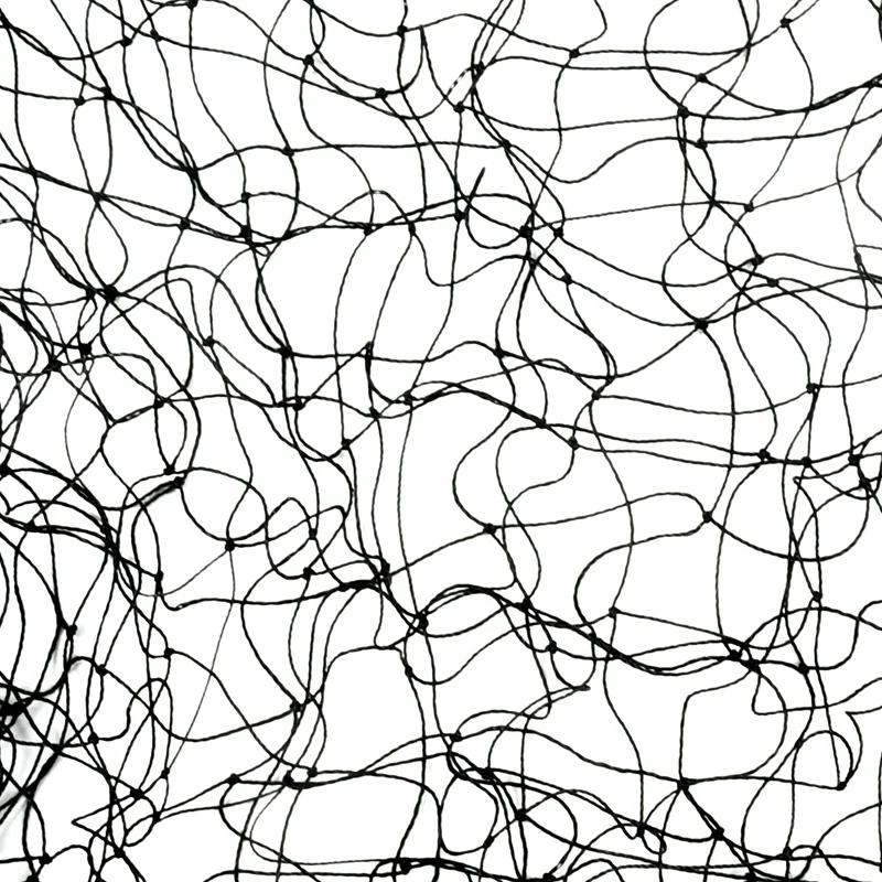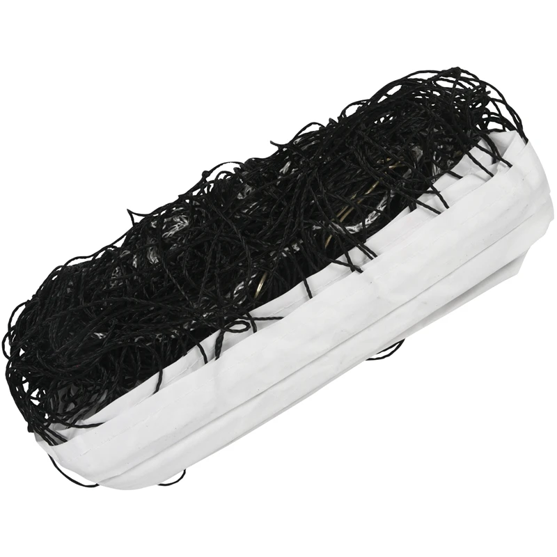 Это изделие с одной стороны покрыто сеткой для волейбола с нейлоновой шнуровкой внутри кромки. Верх выполнен из белой ткани шириной 8 см, прошитой в сложенном виде, а двойной шов используется для покрытия верхних краев, что является аккуратным и красивым.