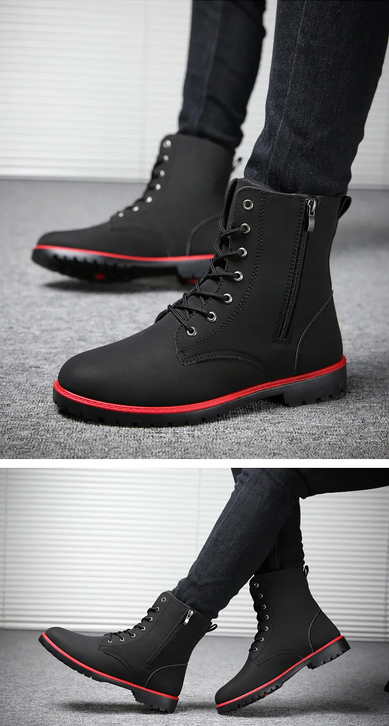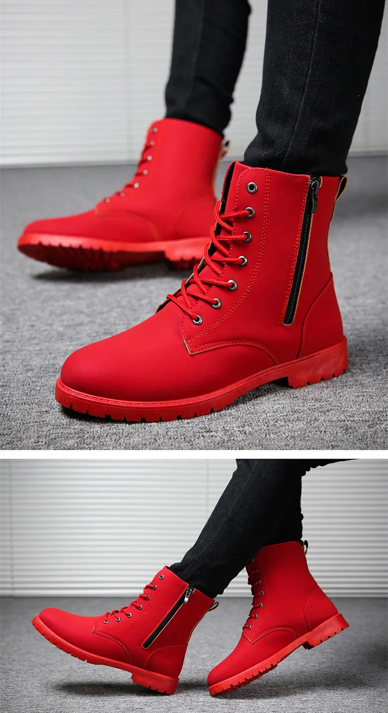 2020 зимняя теплая обувь мужские ботинки Британский Красный Высокий Верх мужские армейские ботинки Корейская молния мужские зимние ботинки ковбойские ботинки для мужчин черный красный размер 39-44