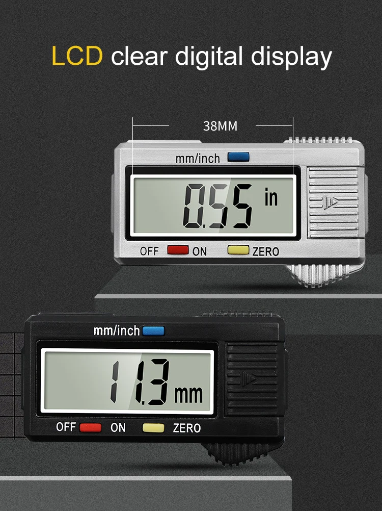 Особенности: Диапазон измерения: 0-150 мм/0-6 дюймов Разрешение: 0,1 мм/0,01 дюймов Повторяемость: 0,1 мм/0,01 дюймов Максимальная измерения расстояния Скорость: 1,5 м/сек или 60 дюймов/сек Дисплей: ЖК-экран Мощность: одна батарейка (не входит в комплект поставки), LR44/SR44 1,5 V Общий размер: 235*77*15 мм/9,25 "* 3,03" * 0,59 "(прибл.) ЖК-дисплей Размер дисплея: 40*15 мм/1,57 "* 0,59" (прибл.) Количество: 1 шт.