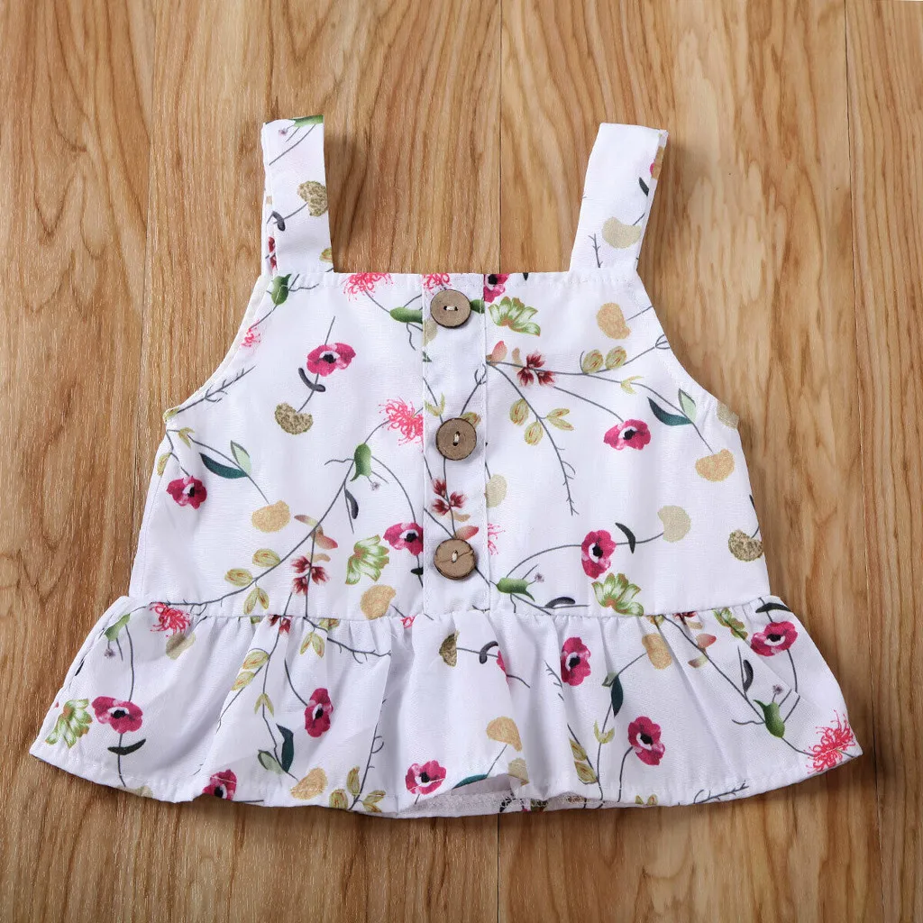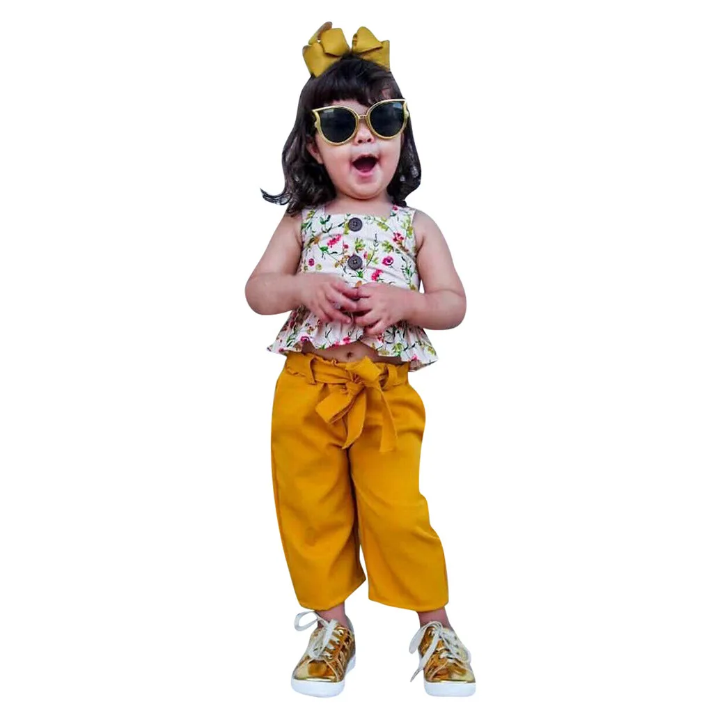 Одежда для маленьких девочек Футболка с цветочным рисунком топы, повседневные штаны с бантом комплект из 2 предметов