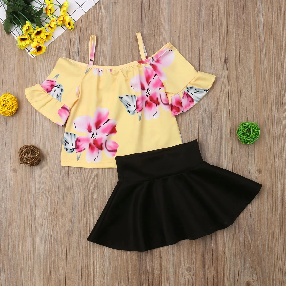 Новейшая модная одежда для маленьких девочек! Высокое качество и абсолютно новый 100% Основной цвет: как на картинке Новинка в моде Материал: смесь полиэстераОбратите внимание: если ваш ребенок пухленький, мы рекомендуем выбрать больший размер, спасибо. Просим перепроверять размеры детей, рост и полноту по размерной таблице перед покупкой/подачей заявки. Спасибо. Посылка включает в себя: 1 топ с открытыми плечами + 1 юбка Таблица размеров: