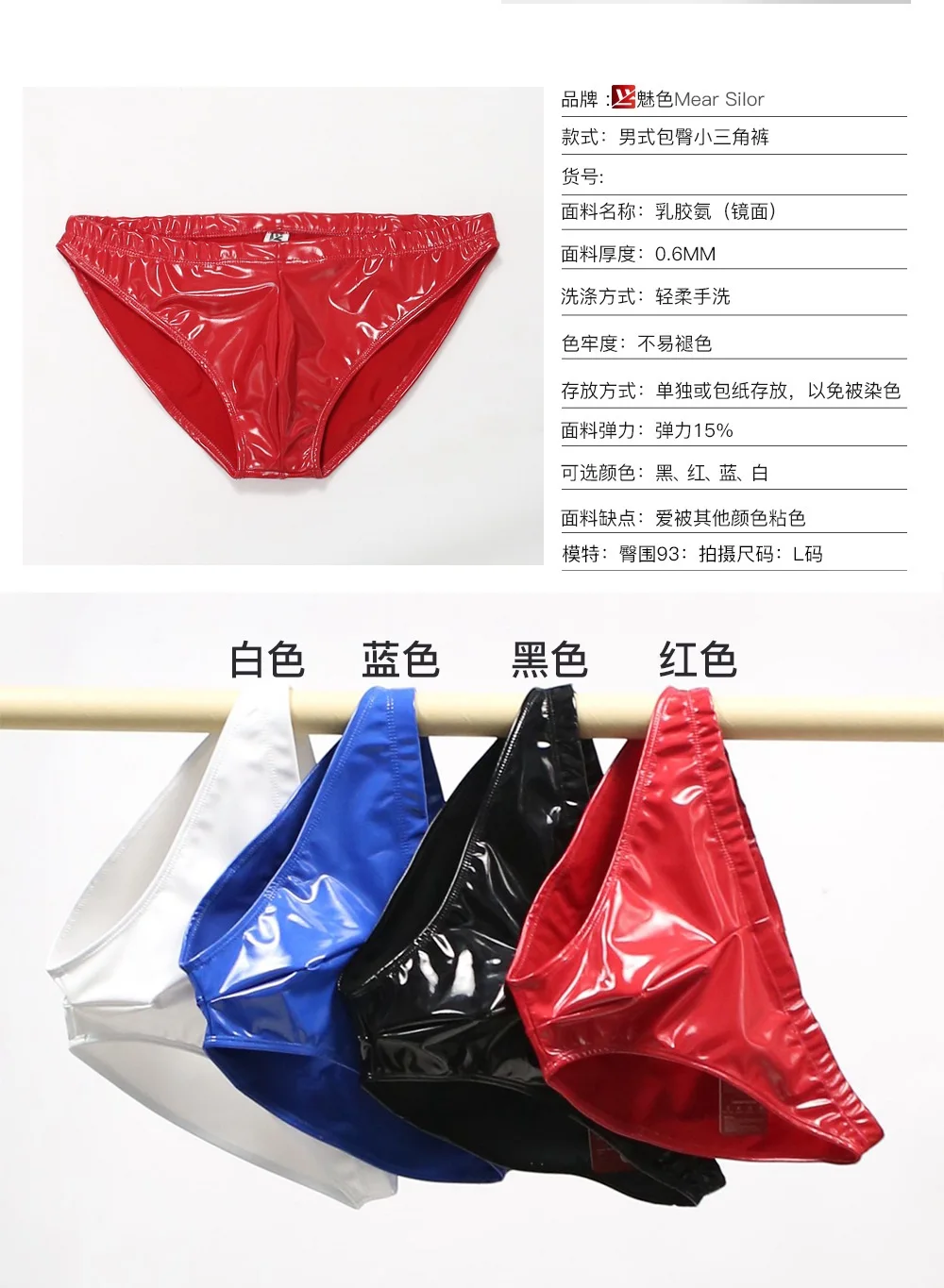 Сексуальное нижнее белье из латекса размера плюс, яркие Трусы из искусственной кожи ПВХ, эротические трусы, u-образные тянущиеся Трусы-шорты