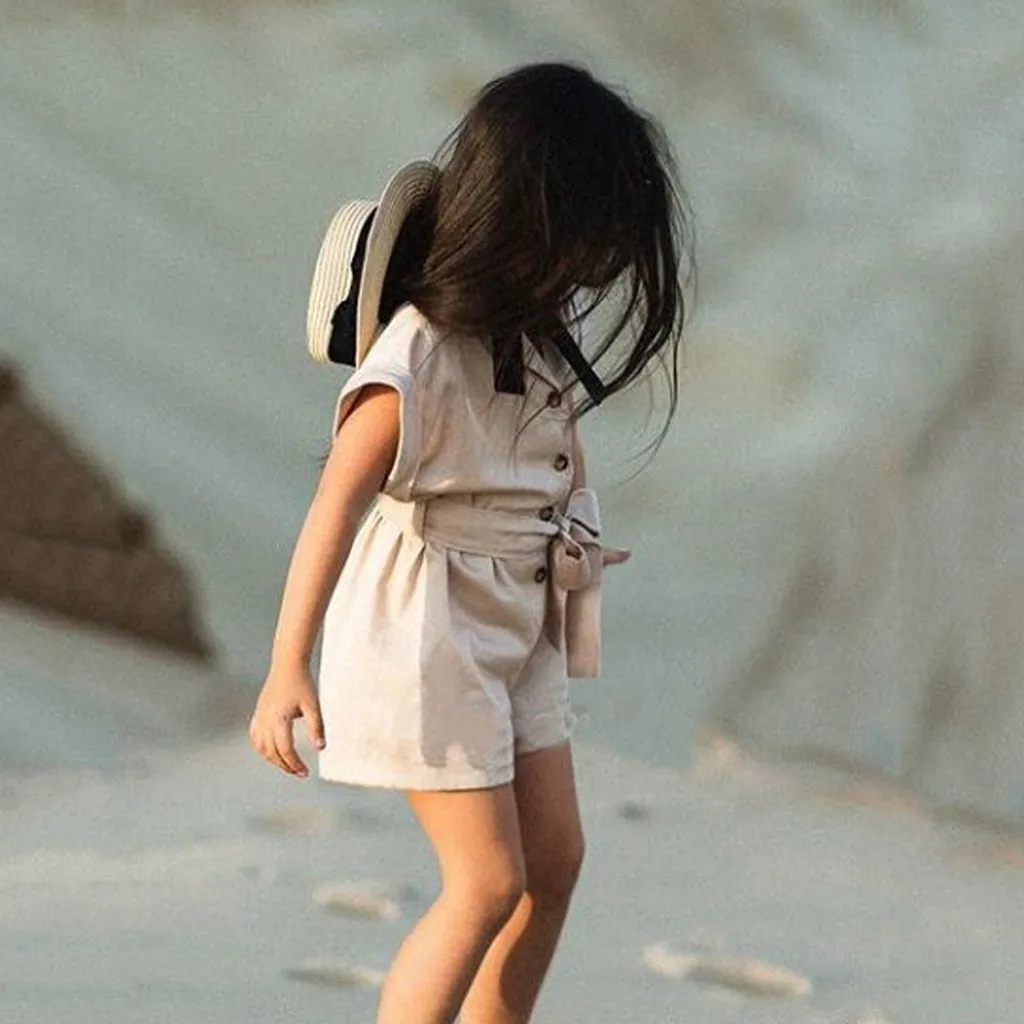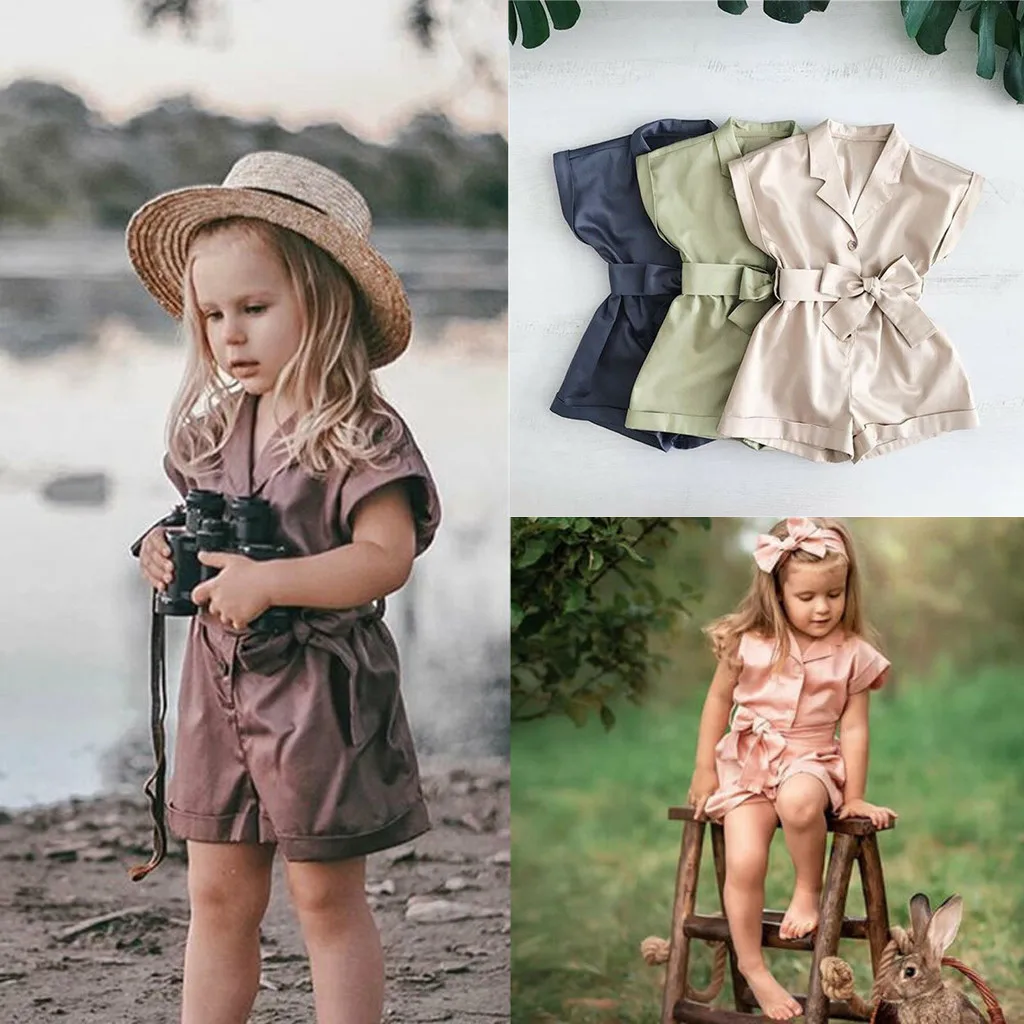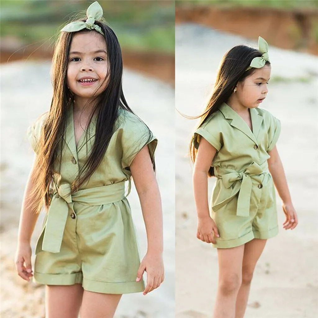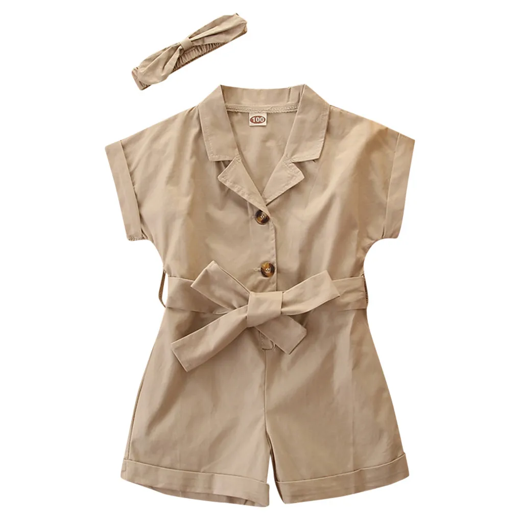 (От 2 до 7 лет) однотонный комбинезон с короткими рукавами для девочек + лента для волос, летняя простая модная однотонная дышащая одежда S4