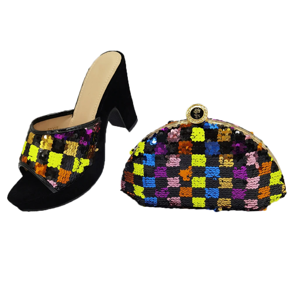 Лидирующий бренд; Оптовая продажа; Вечерние комплект из обуви и сумки; Черные женские туфли-лодочки в африканском стиле; Свадебный клатч с сумочкой в комплекте; Итальянская обувь на каблуке