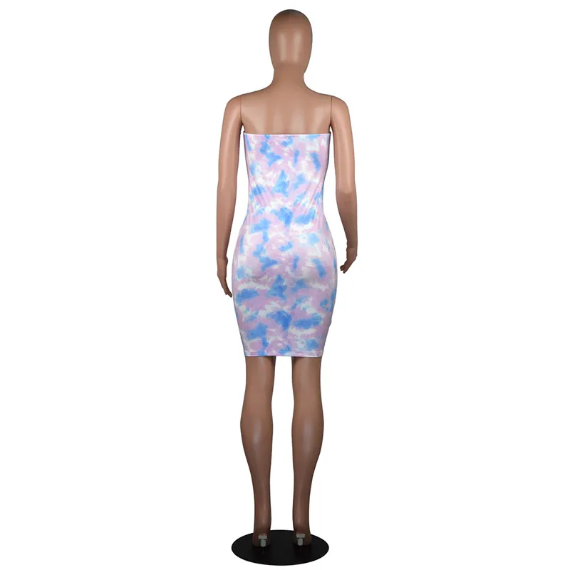 Новинка 2020, женское платье на бретельках, без бретелек, с открытыми плечами, с галстуком, с крашеным принтом, облегающее Короткое мини-платье-карандаш, вечерние платья, клубная одежда