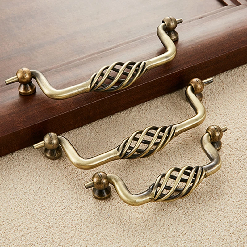 Vintage Antique Bronze Cabinet Handles Hollow Out Birdcage Handles Drawer Knobs Wardrobe Door Pullers Furniture Handle