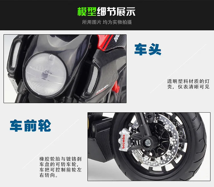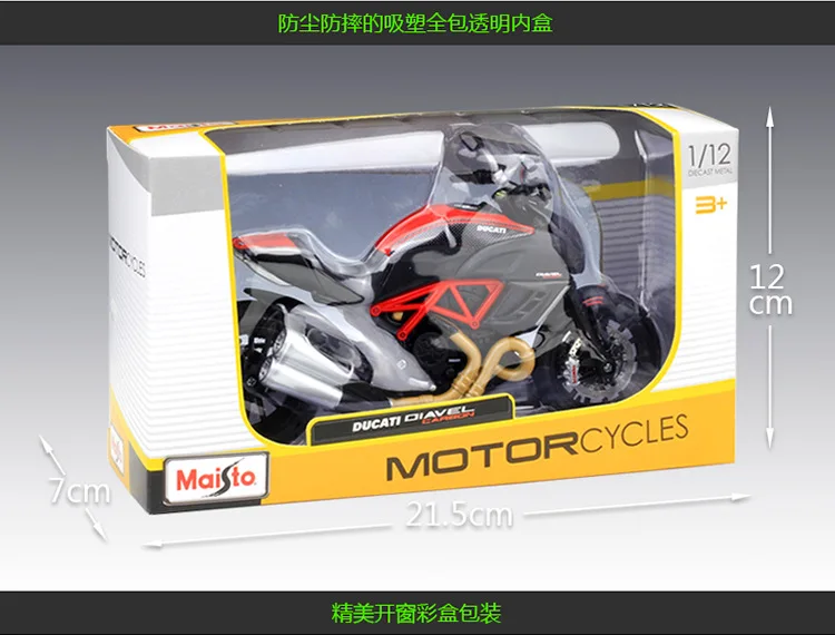 Описание продукта Имя:Kawasaki KX450F Бренд: Maisto Размер: около 17 см x 6 см x 11 см Масштаб: 1:12 Материал: часть топливного бака из сплава, другая часть-из АБС-пластика и резины Упаковка: Полноцветная оконная коробка Функция: ●Переднее колесо и руль могут качаться из стороны в сторону ● Подвижная подставка ●Пружинная задняя подвеска