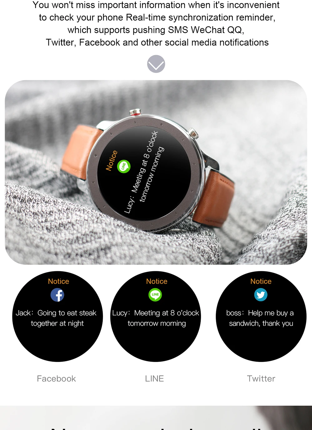 IP68, водонепроницаемый, 1,3 дюймов full-fit круглый экран высокой четкости, 7 дней работы от аккумулятора