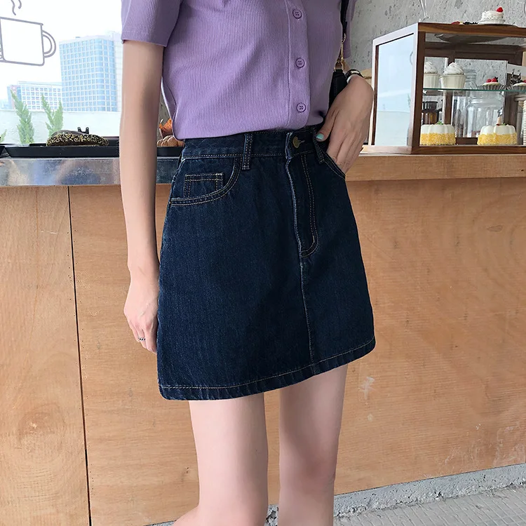 Сексуальная Женская джинсовая мини-юбка, модная летняя, с высокой талией, Корейская, темно-синяя, винтажная, трапециевидная юбка, облегающие бедра джинсы Harajuku, школьная юбка