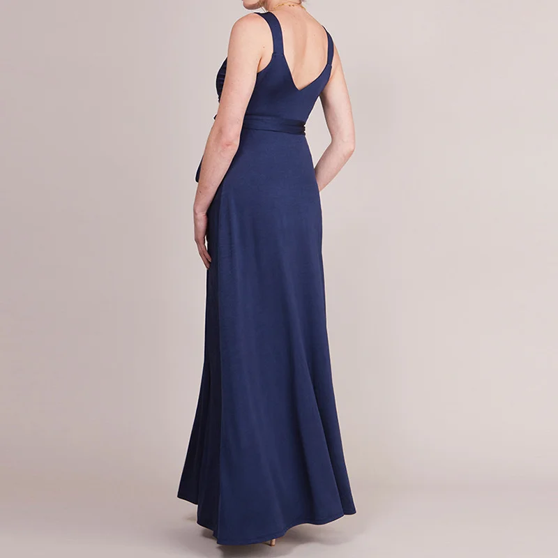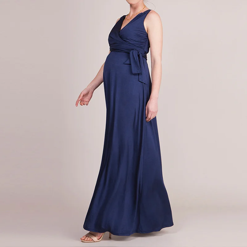 Летнее кружевное платье для беременных женщин с разрезом спереди длинное черно