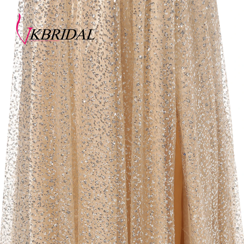 Vkbridal Золотое платье для выпускного с пайетками 2020 Новое блестящее выпускное платье с высоким разрезом вечерние длинные платья на бретельках для выпускного вечера