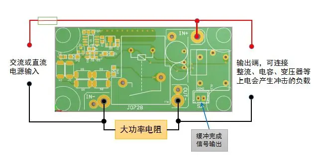 - Эта схема может использоваться во время включения питания, первая серия буферного электронного сопротивления, когда конденсатор почти полностью заряжен, реле короткого замыкания электронного сопротивления.