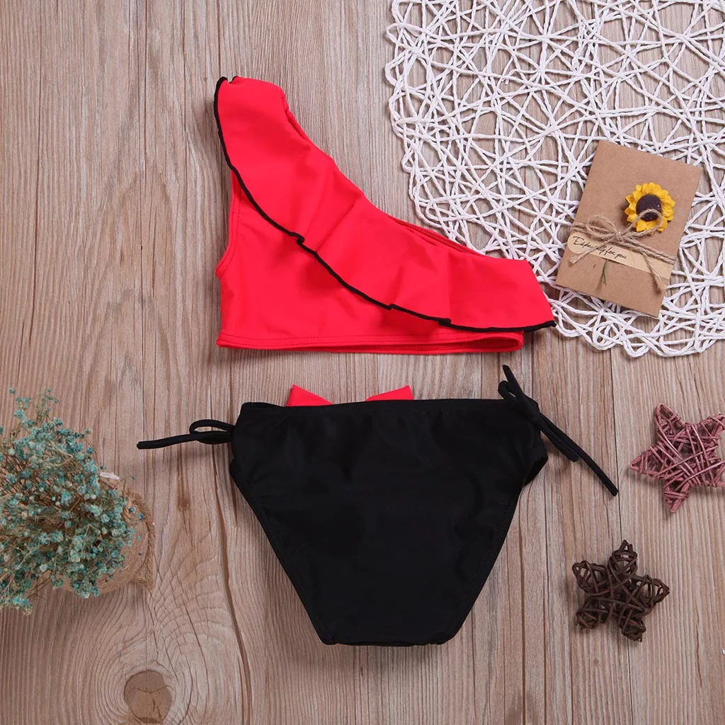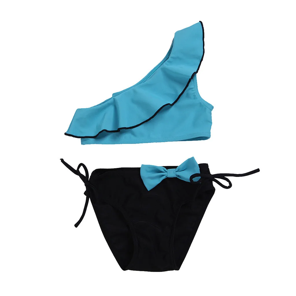 Летний детский купальный костюм с оборками и бантом для маленьких девочек; Комплекты бикини
