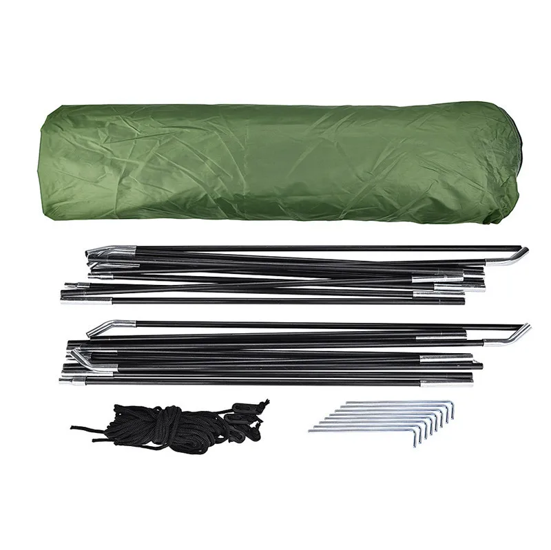 Список: основной корпус палатки * 1 + столбы * 1 пара + ветряная веревка * 4 + Гвозди для заземления * 8 + инструкции * 1