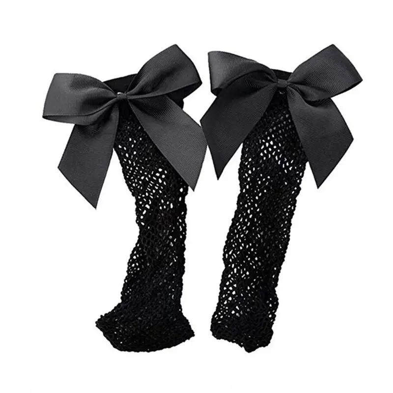 Girls Fishnet Socks Women's Casual Stretch Sheer Fishnet Net Socks Mesh Ankle High Bowknot Comfort