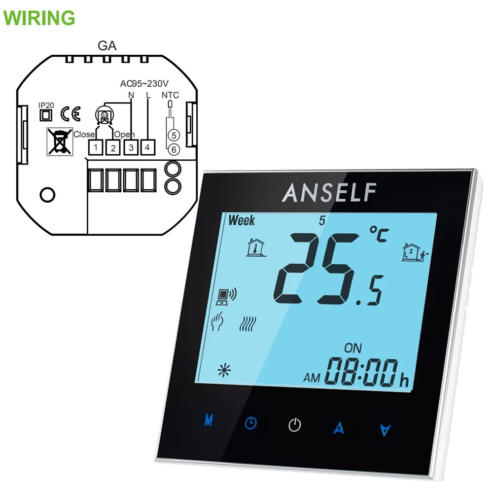 Это прочный и надежный умный Wi-Fi термостат, который легко устанавливается и программируется. Термостат модный, простой и Сверхтонкий, который идеально подходит для любого стиля декора. Благодаря гибкости этого умного термостата вы можете программировать свое устройство так, как вам нравится. Лучший момент заключается в том, что термостат может управляться дистанционно через сотовый телефон, планшет или компьютер, который удобно сочетается с вашим образом жизни и обеспечивает вам энергосберегающую и комфортную среду для жизни.