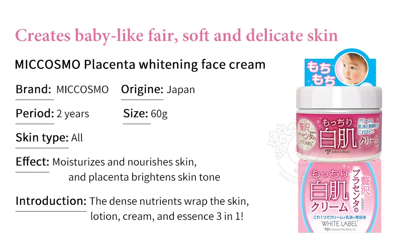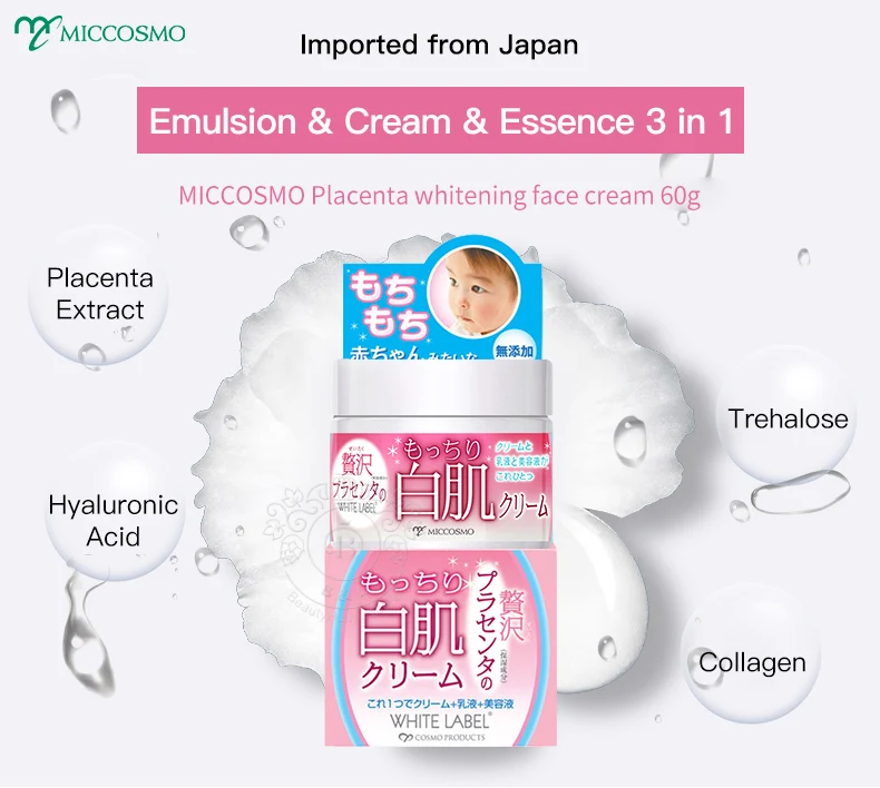 Японский MICCOSMO плацента белая этикетка серия-отбеливающий крем для лица 60 г