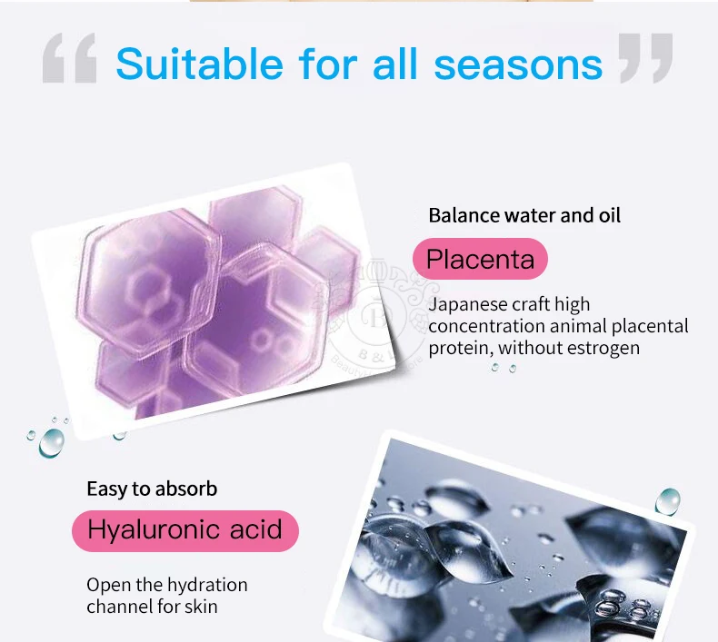 * Эффективные ингредиенты: экстракт плаценты, гиалуроновая кислота, трегалоза, коллаген