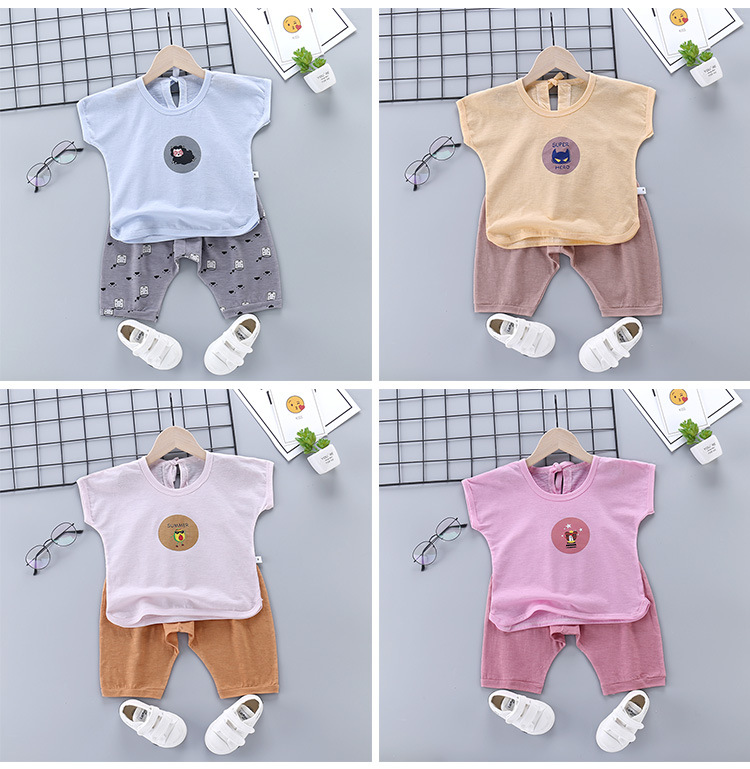 Детская одежда, Новинка лета 2020, Детский костюм с короткими рукавами в Корейском стиле, хлопковый костюм с укороченными брюками, костюм с рукавами для мальчиков