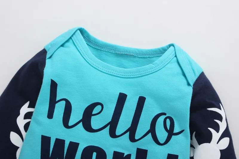 Hello World/комплект одежды для новорожденных мальчиков, топы с буквенным принтом и штаны, шапки, комплект из 3 предметов, модная одежда для маленьких мальчиков и девочек
