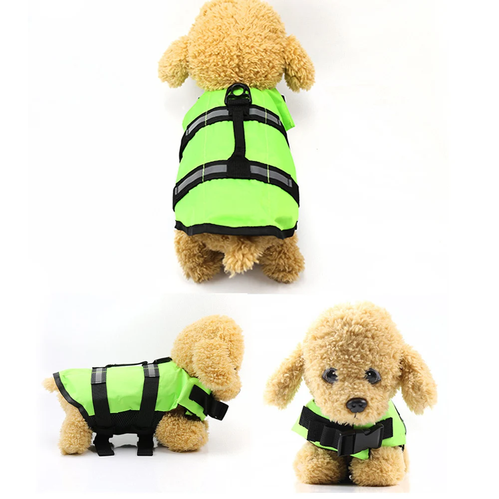 2. Регулируемый спасательный жилет для собак, разработанный с верхней полоской для легкого спасения вручную или крючком для лодки в воде;