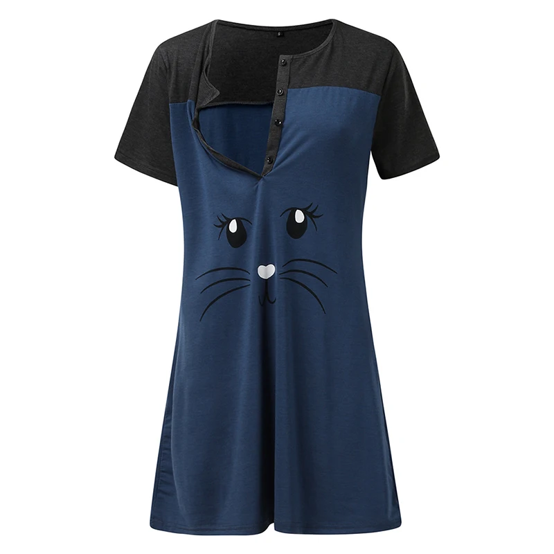 Летнее платье для беременных с героями мультфильмов; Ночная рубашка с короткими рукавами; Хлопковая повседневная одежда для беременных; Платье для беременных женщин