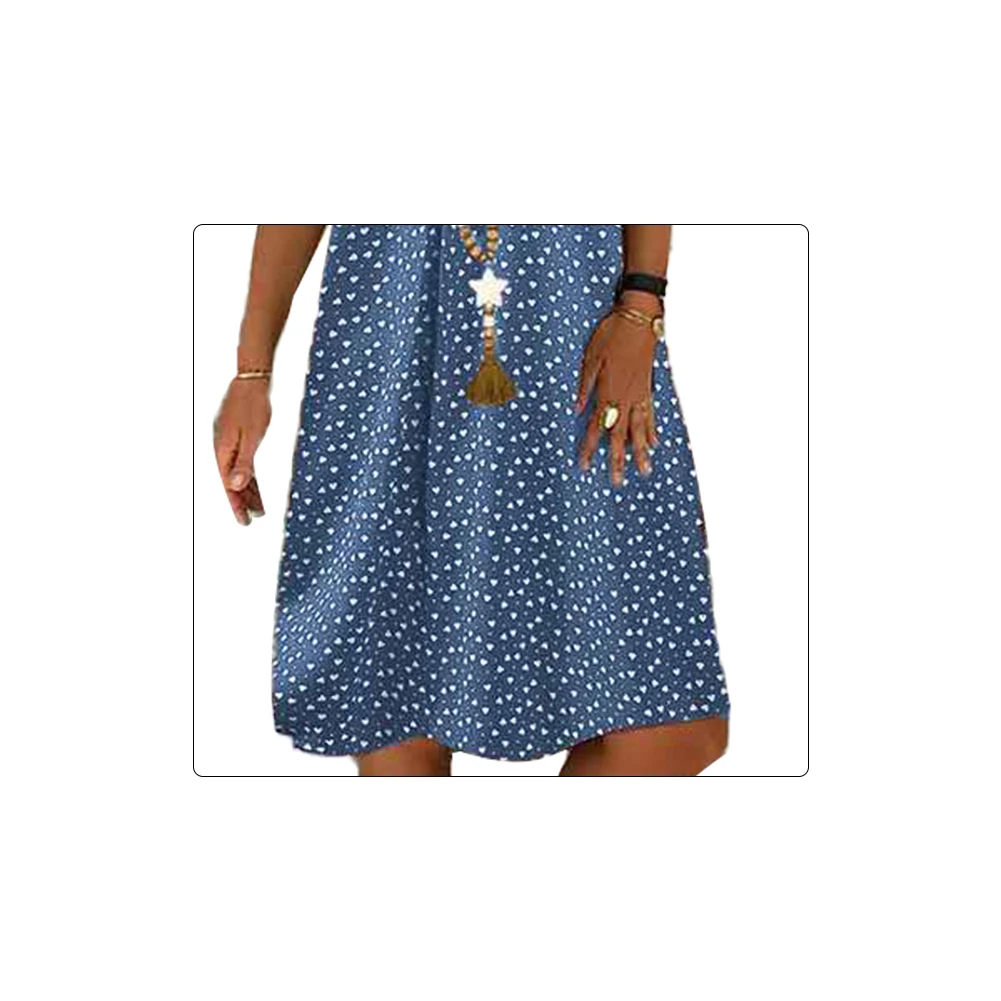 Женское летнее Повседневное платье до колена с v-образным вырезом и коротким рукавом в горошек с принтом сердца