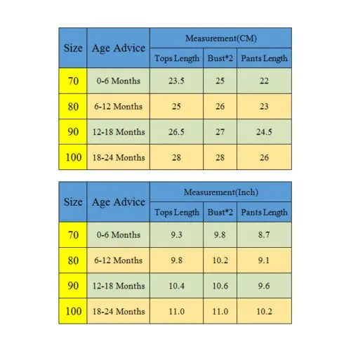 -Качество является первым с лучшим обслуживанием. Все покупатели — наши друзья. — Модный дизайн, 100% новый товар высокого качества! -Материал: хлопок -Цвет: как показано на фотографиях -В комплект входит: 1 Топ и 1 штаны -Размеры: 70/80/90/100 смРазмеры таблицей: