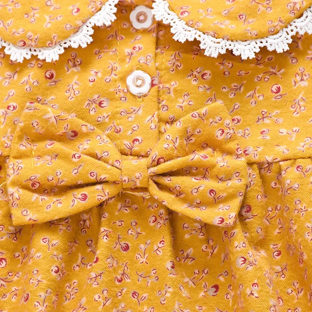 Корейские платья для девочек, кружевное платье принцессы с длинными рукавами и кукольным воротником, с бантом и цветочным рисунком, новинка, Лидер продаж, одежда, 50 *
