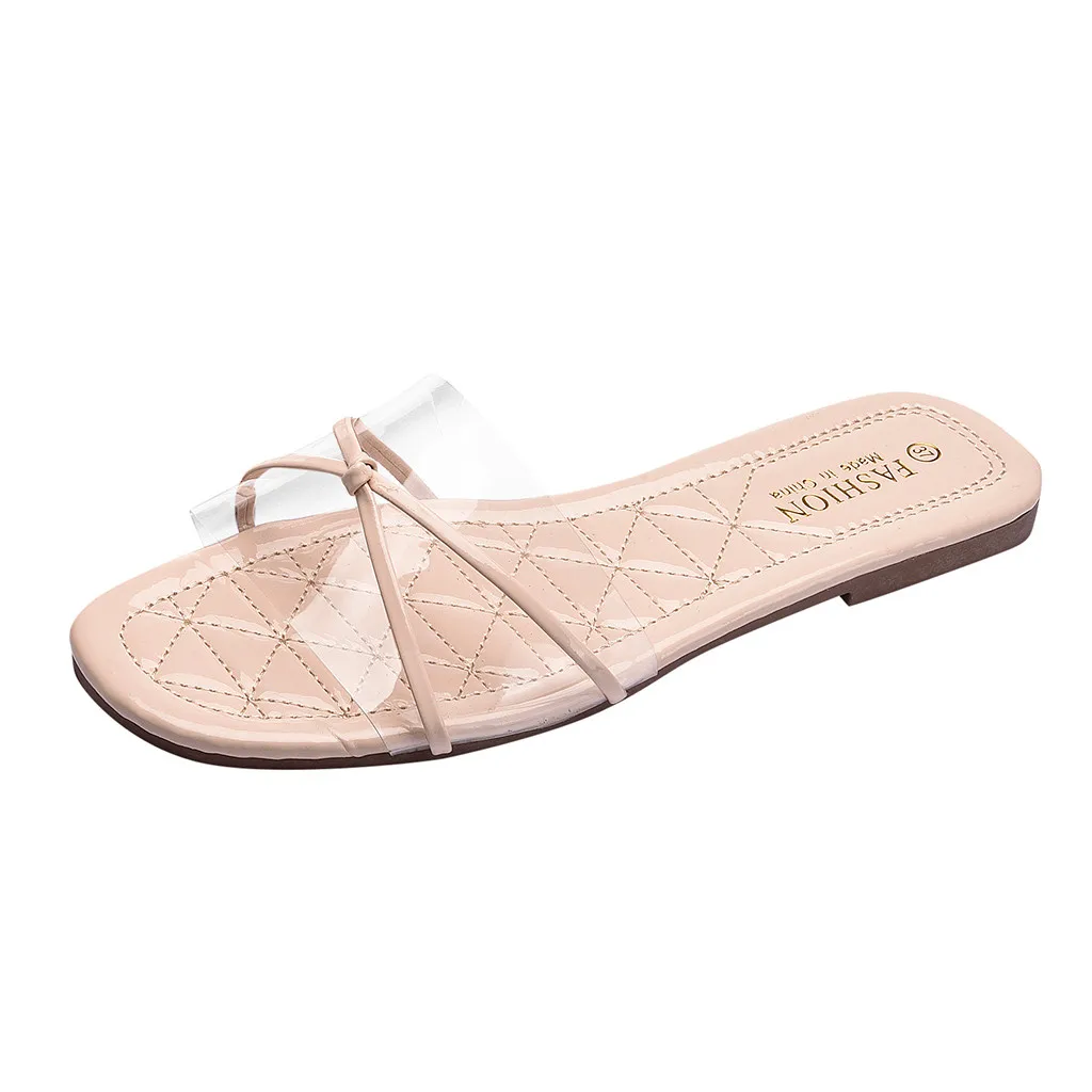 Женские модные повседневные сандалии с открытым носком; Обувь на плоской подошве; Пляжные шлепанцы