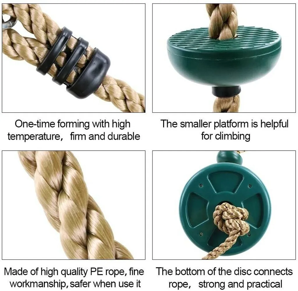 Достаточно прочный и стабильный.Большой Диаметр диска 12 дюймов, малый диаметр диска 4,3 дюймов, статической нагрузки Емкость до 440 фунтов. Сама Скакалка достаточно широкая, чтобы держать Ну, если ваши маленькие дети просто хотят стоять и качаться на веревке, Нижний пластиковый диск достаточно большой, чтобы держать ребенка.