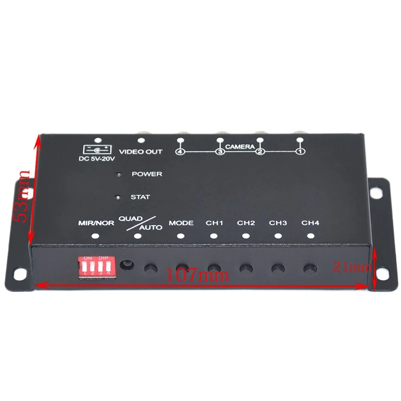Автомобильная камера видео управления коробка для четырех каналов с Quad Сплит, с зеркальным переключателем для каждой камеры