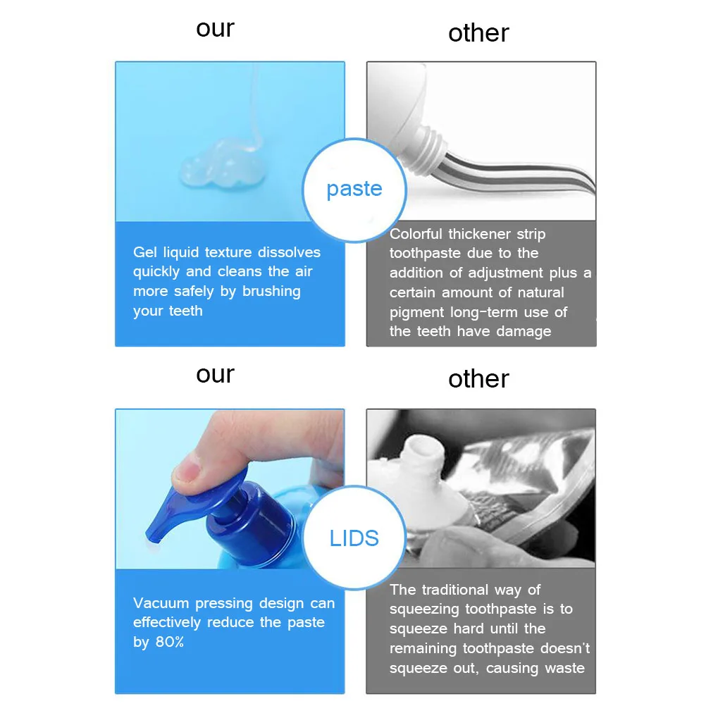 The new liquid toothpaste is more convenient to press, the dry brush does not need to be stained with water, and the appropriate amount of paste can be used on the toothbrush.