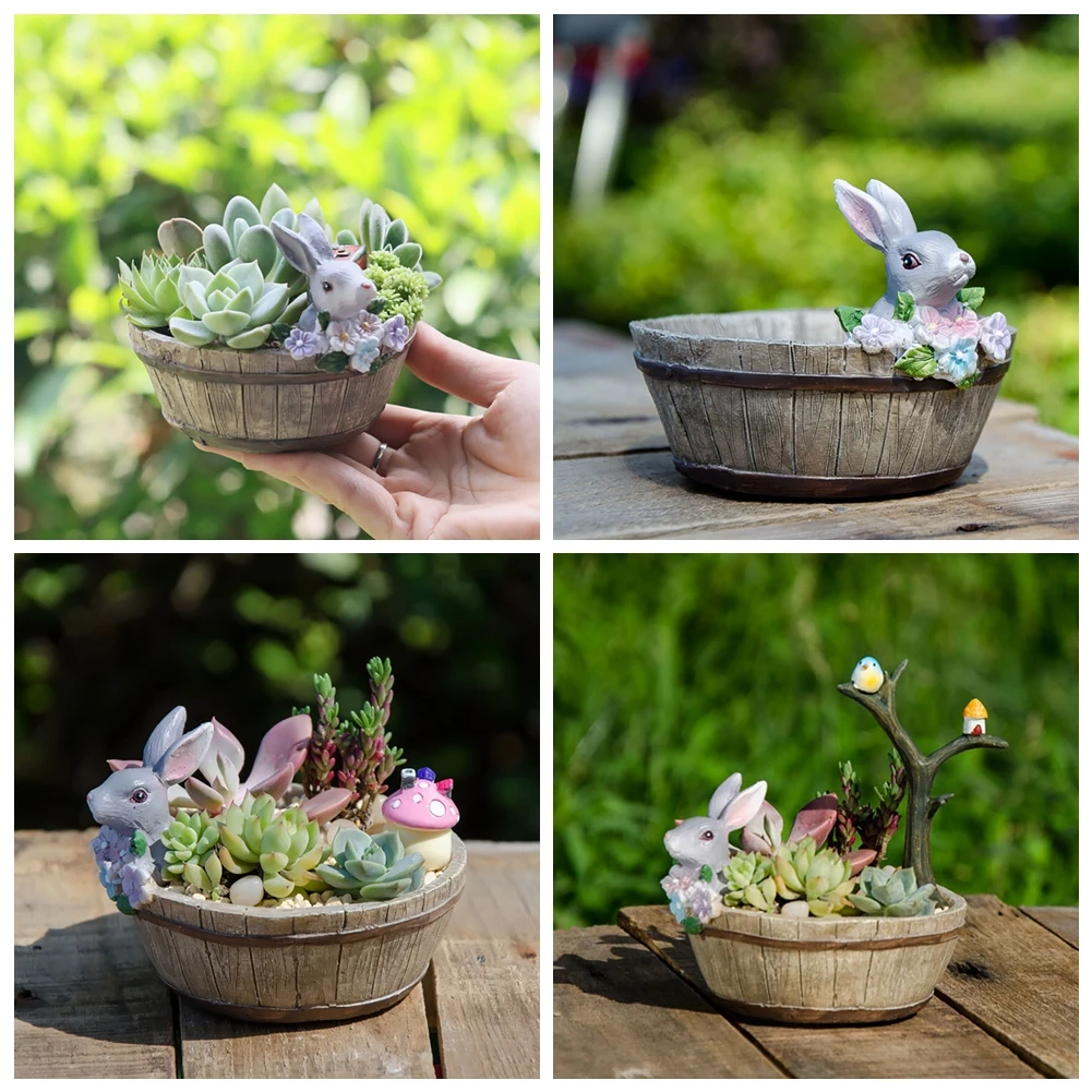 Пасхальный кролик, цветочный горшок для суккулентных растений, кактус, смола, милые животные, кантри стиль, горшки, садовый домашний декор, украшение для стола