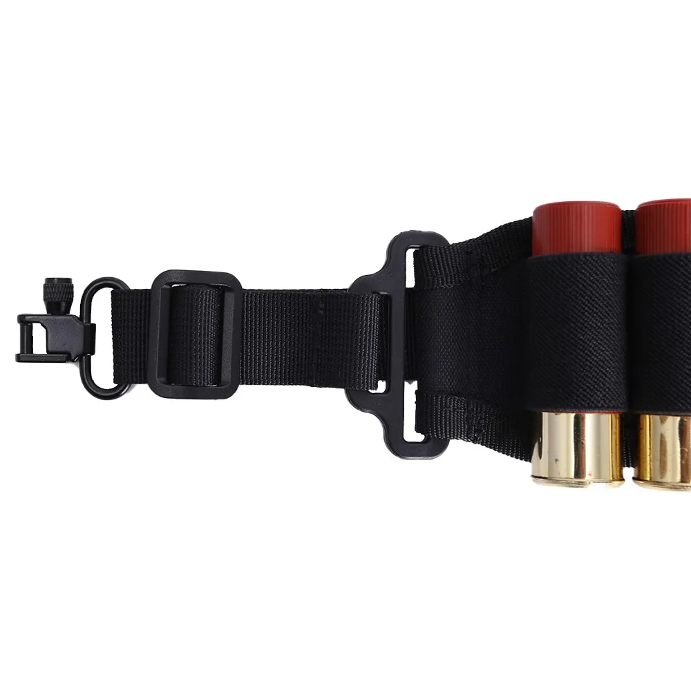 Двухточечный строп для дробовиков с держателями Вмещает 25 чехлов (калибр 20 или 12) Металлические прочные Вертлюги, безопасная блокировка Нескользящая подложка, не соскальзывает Большой диапазон длины для регулировки в зависимости от вашего роста