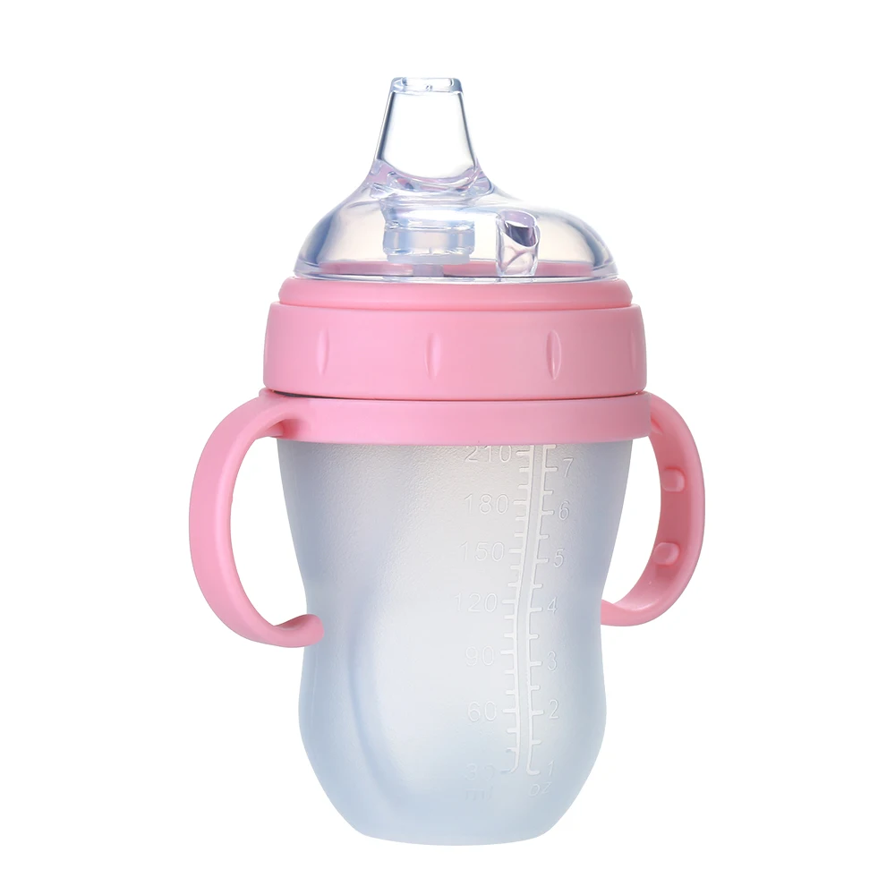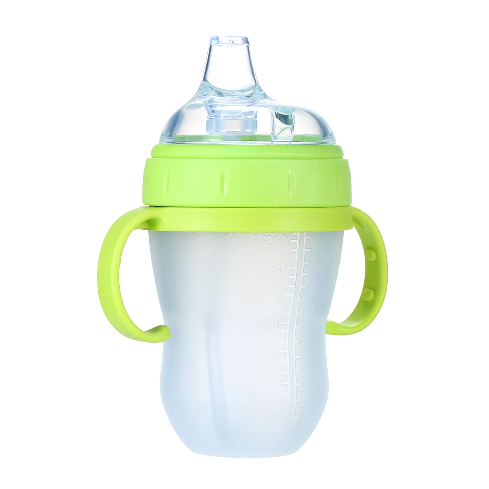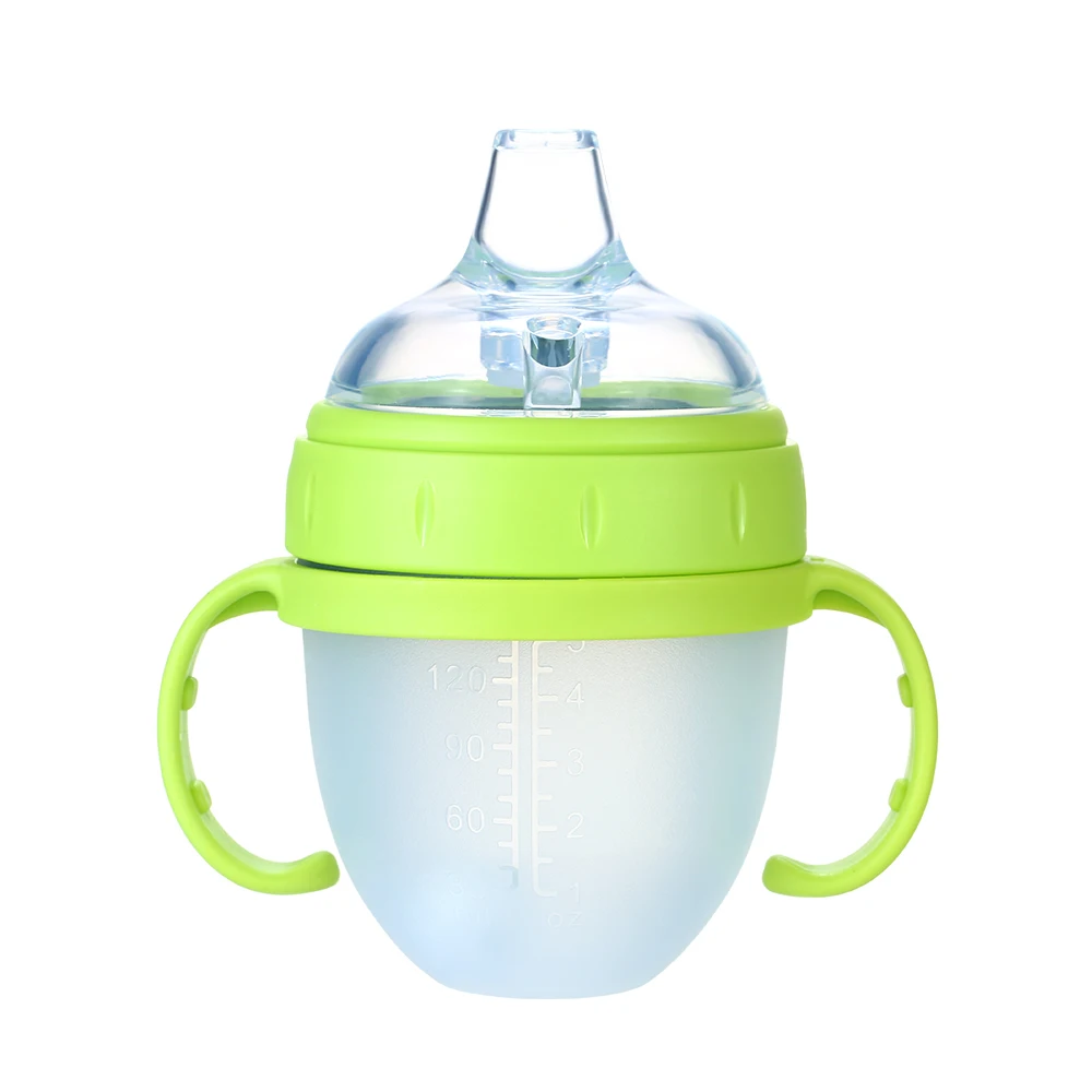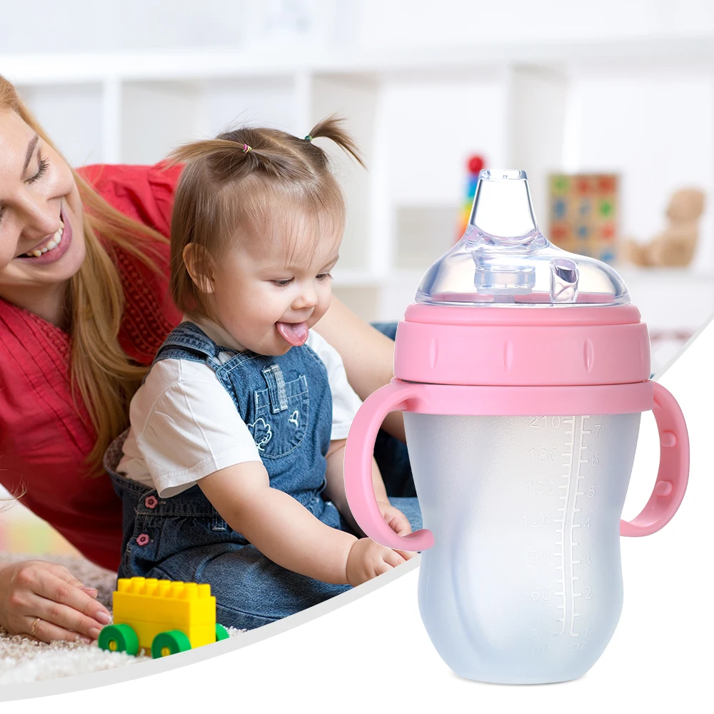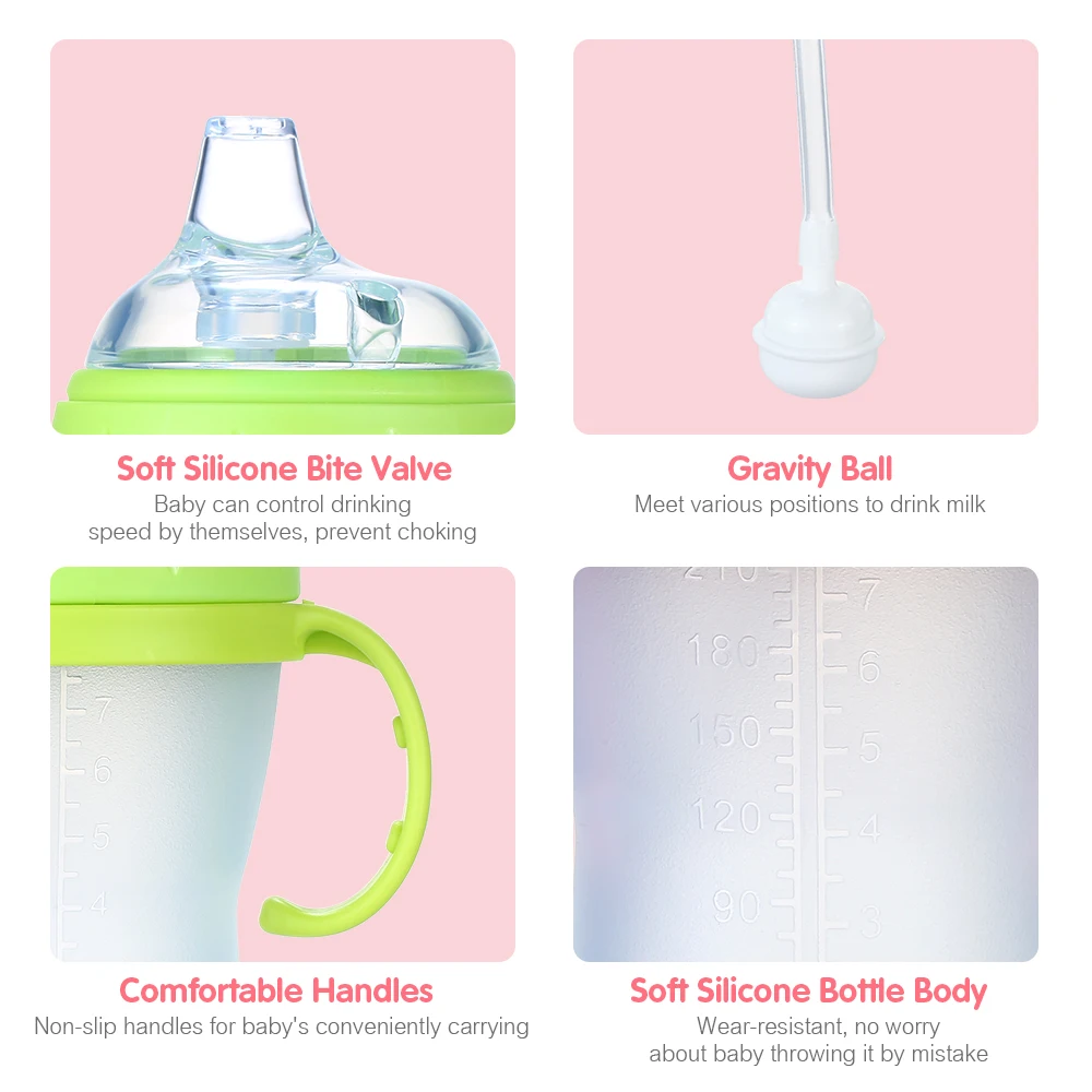 Высококачественный материал, мягкий силиконовый корпус бутылки, нетоксичный, без запаха, безопасный для ребенка. Подходит для ребенка, чтобы пить воду, молоко или сок.