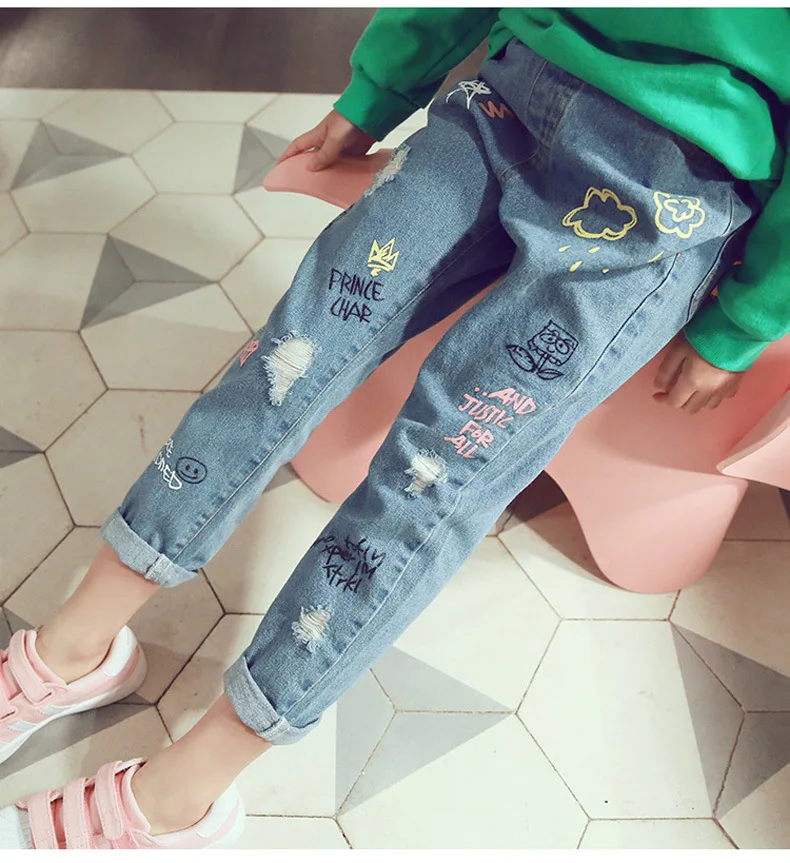 2020 джинсы для девочек на весну и осень модные брюки с мультяшным принтом медведя