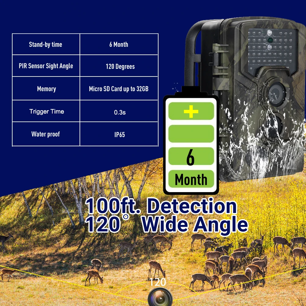 Особенности: -Камера с ИК-датчиком HD 1080P, 120 градусов, поддержка 20MP/16MP/12MP/8MP, разрешение изображения на выбор, 1080P 30fps видео. Инфракрасная камера для наблюдения за дикими животными. -1/5/10/30 секунд/минут, интервал между движениями опционально. Камера может быть запрограммирована, чтобы работать как в режиме PIR, так и в режиме ожидания времени. -ИК-вспышка для цветной фото/видео дня или черно-белой фотографии/видео в ночное время. HD видео (1080P) со звуком. -Реальная температура, время и дата, которые будут штампованы на картинке, так что вы знаете, когда было сделано изображение или видео. -42 инфракрасных светодиода, сверхдальность обнаружения до 20 м/66 футов. Время триггера-0,3 с, быстрая непрерывная съемка, никогда не пропустите ни одну важную картинку. -IPX65 герметичный водонепроницаемый внешний вид, эффективно защищает от попадания дождевой воды в пыль и насекомых. -Поддержка карты Micro SD (до 32 Гб)/USB / AV (sd-карта не входит в комплект). -Отличный инструмент для охоты, путешествий, кемпинга, отслеживания домашних/диких животных. Простота в использовании и креплении. -Это может быть вызвана любым движением человека (или животных) в той или иной области, контролируемой датчиком движения. -Инфракрасный пульт дистанционного управления является входным устройством камеры и в основном используется для настроек клиентов. Максимальная дистанционная дальность составляет 20 метров. -Благодаря фиксированной веревке с пряжкой, легко крепится к стержням дерева и веткам дерева. Примечание: -Пожалуйста, вставьте tf-карту, когда камера выключена. -Пожалуйста, не вставляйте и не вынимать TF-карту, когда камера включена. -Рекомендуется сначала использовать TF карту, когда она используется камерой. -Камера будет подключена к usb-порту компьютера в режиме USB. В этом чехле карта TF работает как съемный диск. -Пожалуйста, убедитесь, что при обновлении прошивки достаточно мощности, в противном случае процесс обновления может быть неправильно отключен. В случае, если возникнут какие-либо повреждения после неправильного процесса обновления, камера может надлежащим образом прекратить свою работу. Посылка, детали: 1 камера HC800A 1 X USB кабель 1 х ремень 1 X Руководство пользователя