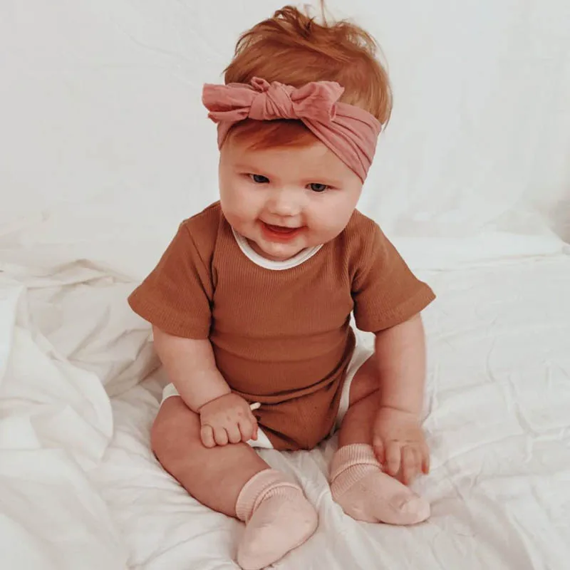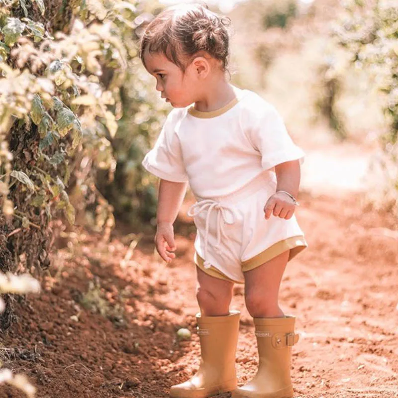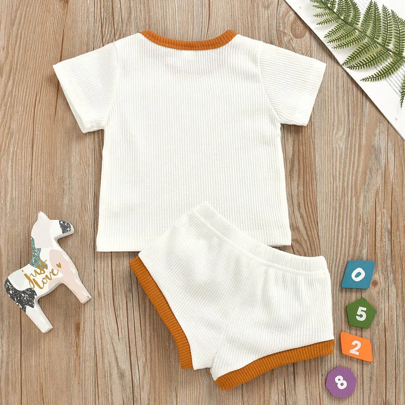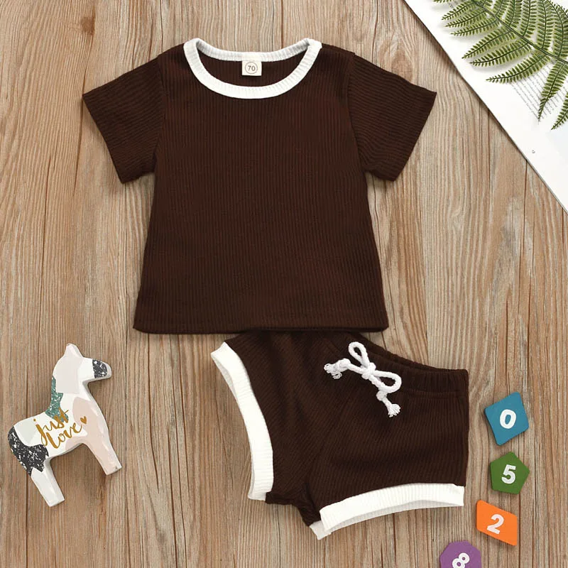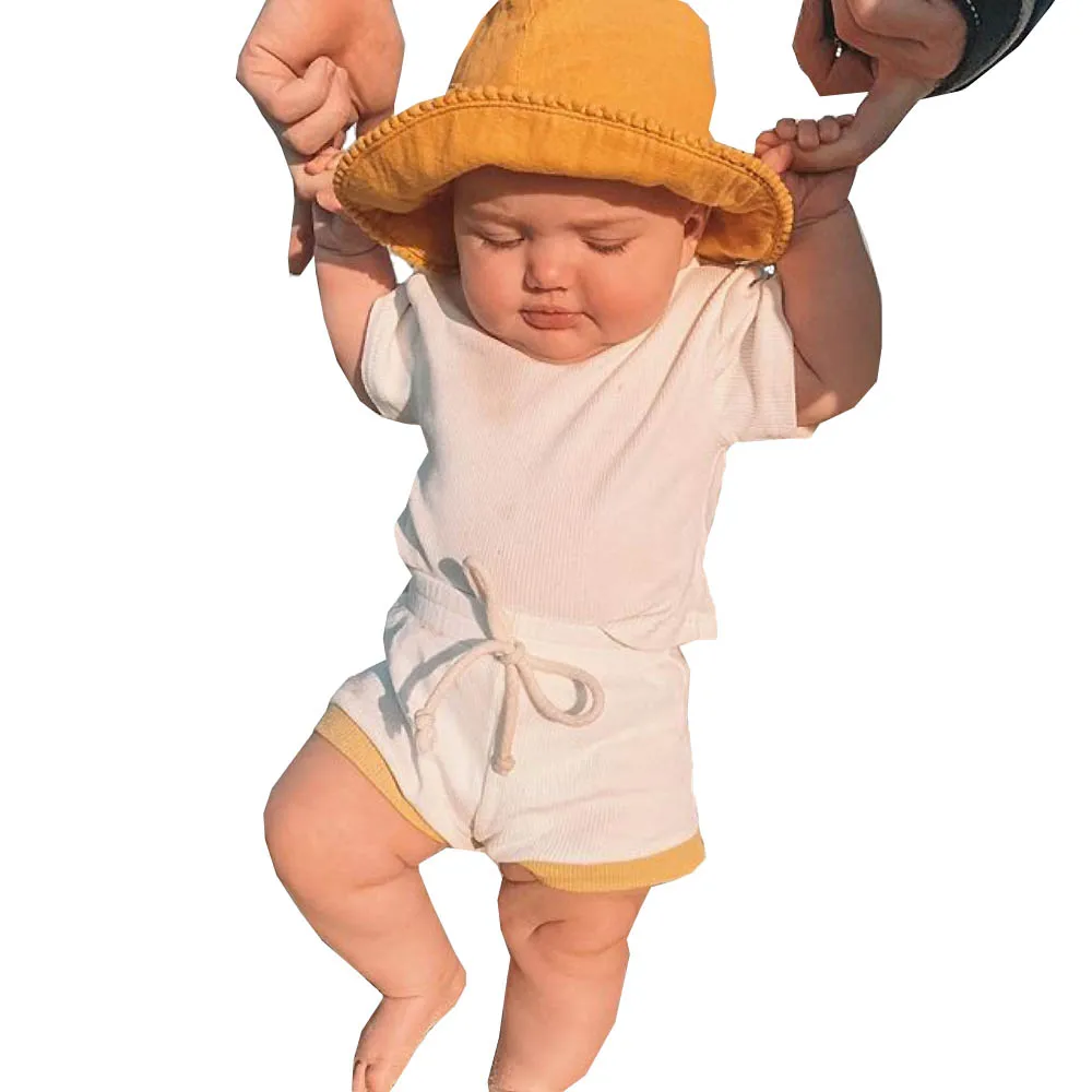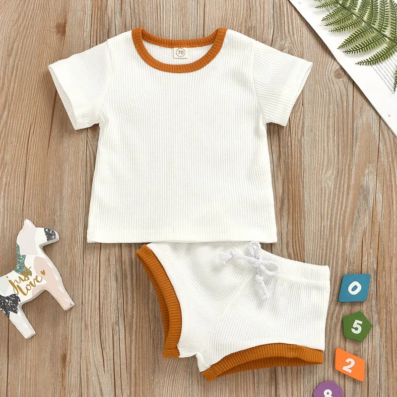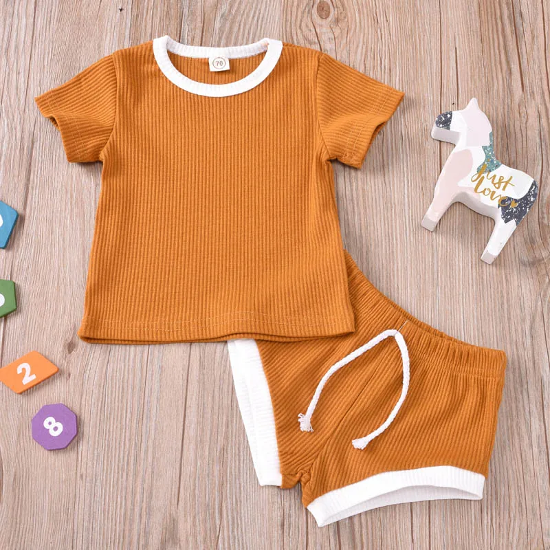 Детская одежда, Однотонная футболка с короткими рукавами в полоску для мальчиков и девочек + шорты, комплект из двух предметов, качественная одежда для малышей 0-2 лет