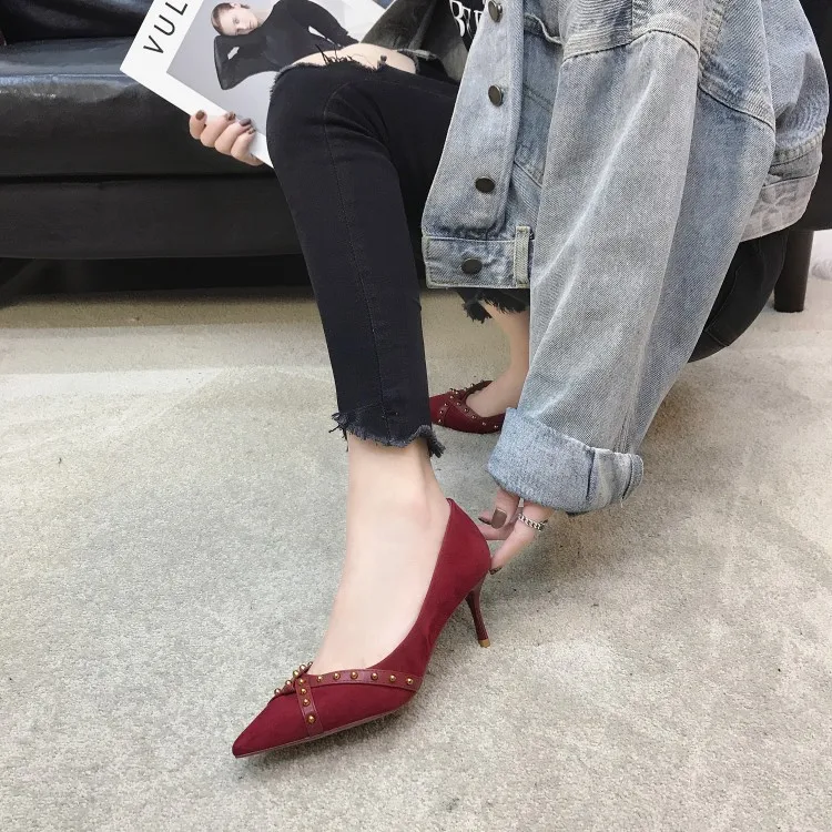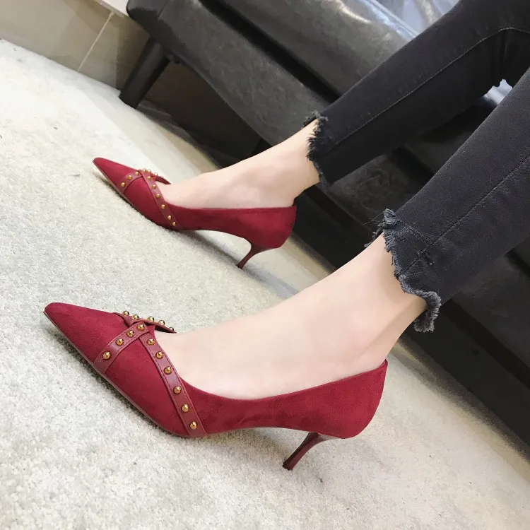 OLEKA/женские классические модные красные тонкие туфли; Новинка 2020 года; Пикантные удобные дышащие туфли с острым носком на каблуке с ремешком; AS123