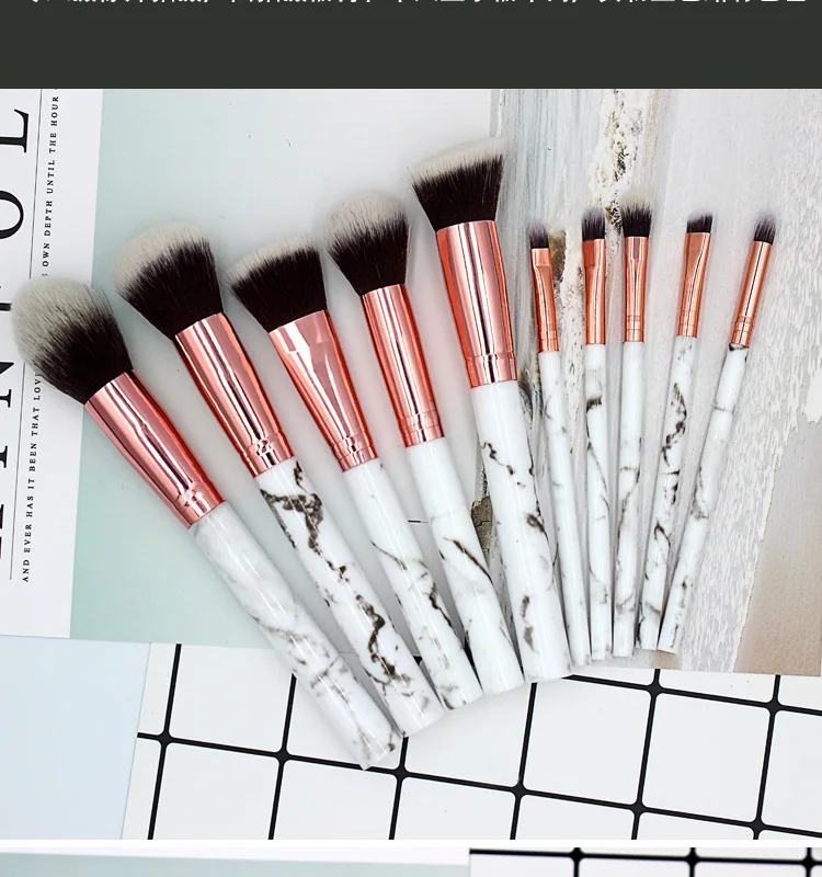 Dinorag 10 шт. мраморная Кисть для макияжа с держателем из розового золота кисти для макияжа синтетические кисти для макияжа набор профессиональных кистей с сумкой