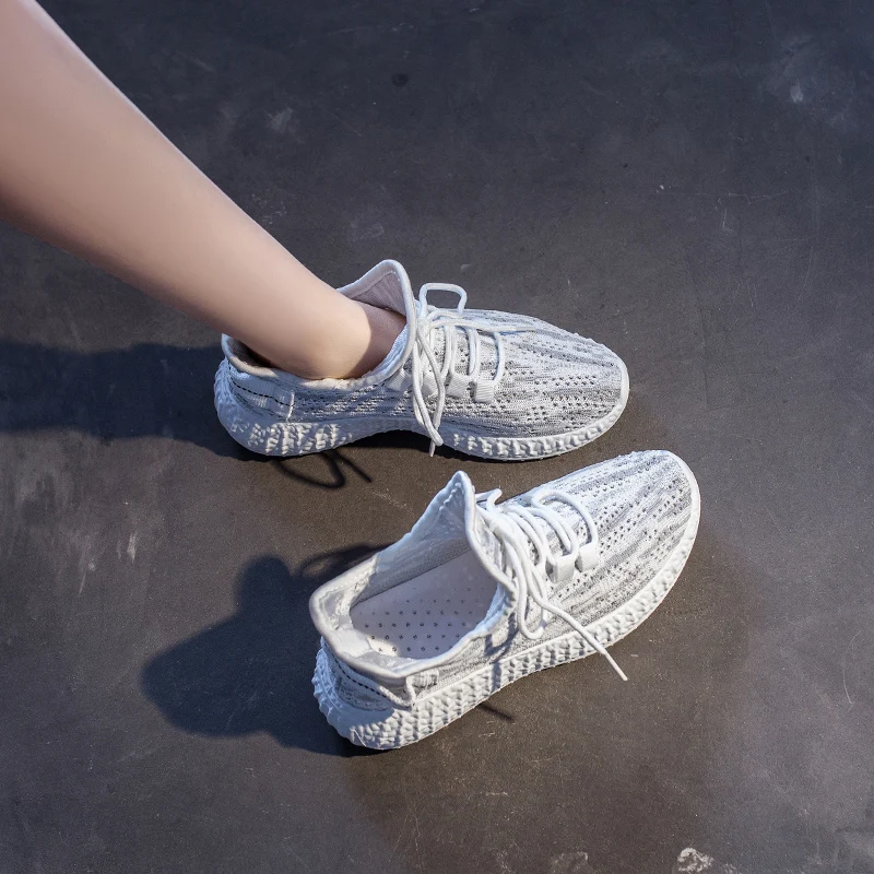 Женские кроссовки со шнуровкой, сетчатые кроссовки на платформе, модные легкие теннисные туфли