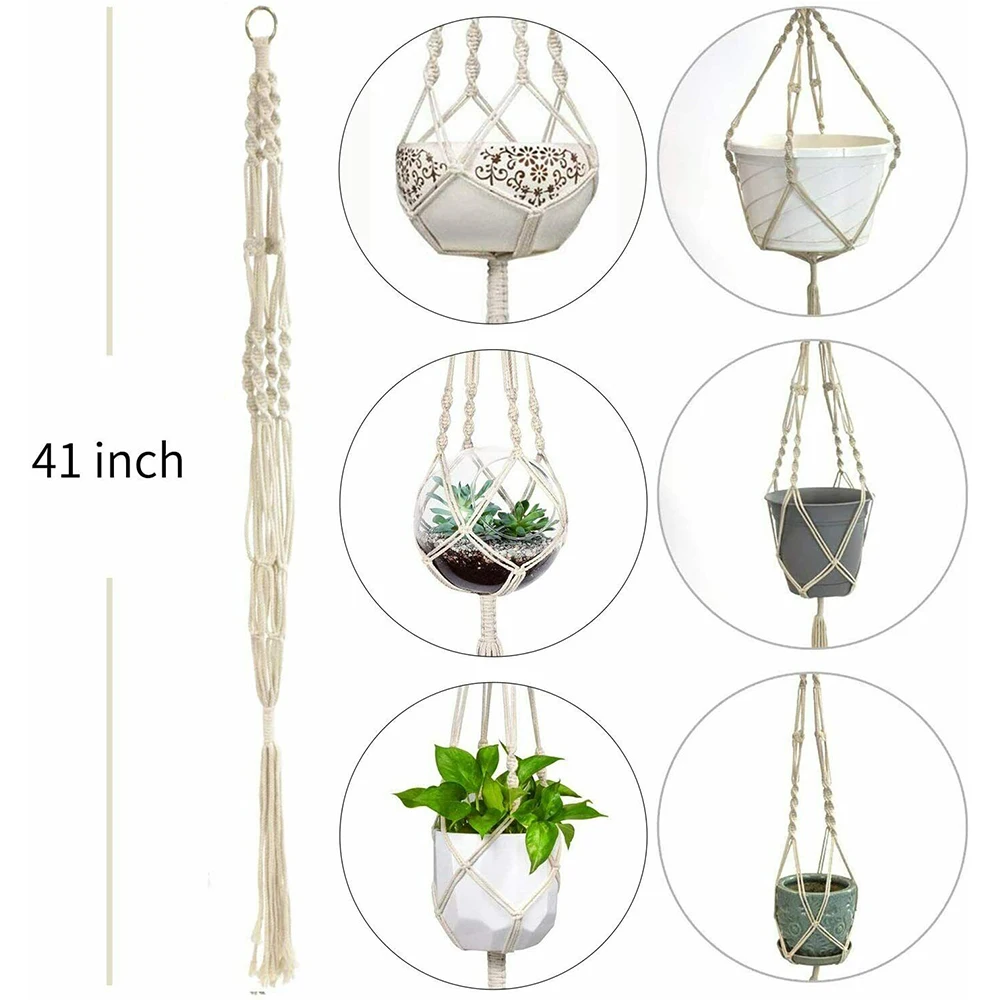 2 упаковки, подвеска для растений из макраме, цветочные горшки, 41 дюйм, ручной работы, Ротанговые настенные Подвесные Растения, держатель, корзина из джута, украшение для дома и сада