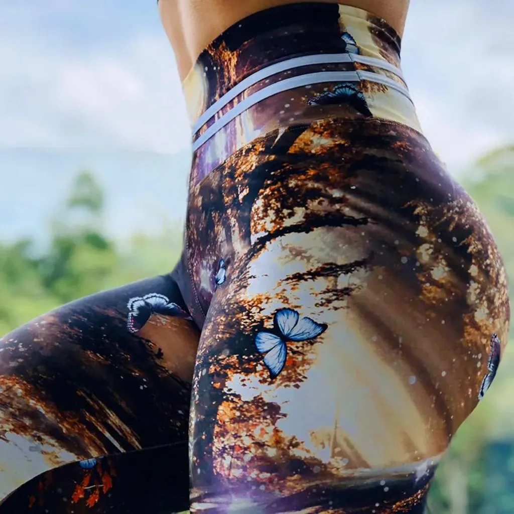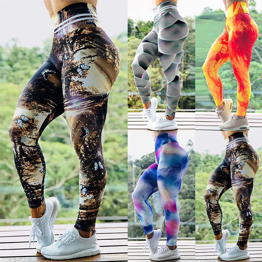 Женские эластичные брюки с высокой талией и принтом, штаны для бега, фитнеса, йоги