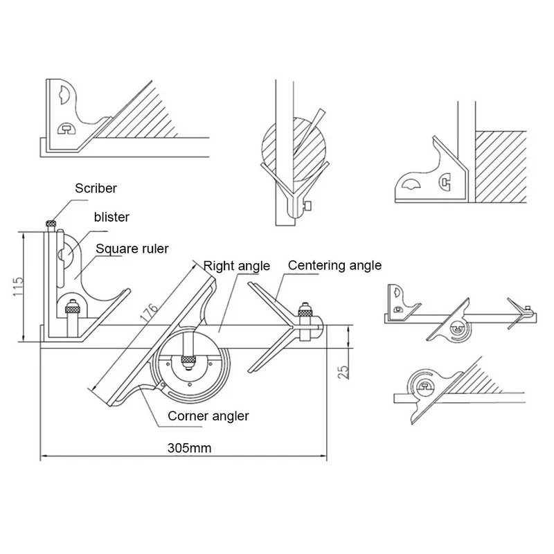 <Регулируемый: с регулируемой квадратной головкой для точного измерения. 0 ~ 300 мм Диапазон измерения и регулируемый угол.