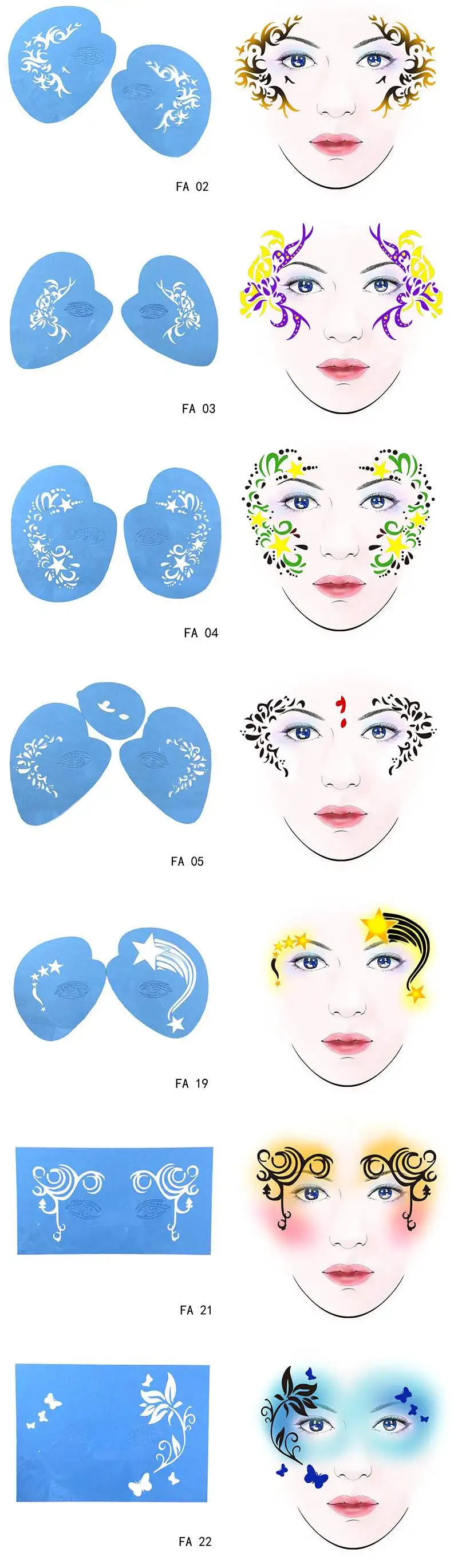 7 наборов (узоров) трафаретов для краски лица