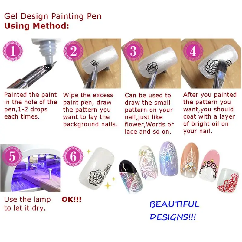 3. Можно использовать для рисования маленького узора на ногтях, как цветок, слова или кружево и так далее.