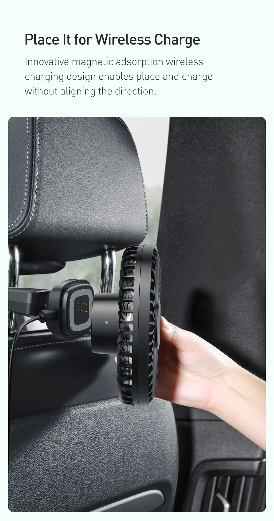 Новая конструкция магнитного разделения позволяет вентилятору устанавливать на задние сиденья и легко снимать для использования в качестве портативного вентилятора на передних сидениях.